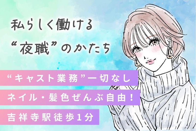 仕事内容 ◤「夜職に復帰したいけど、キャストは…」 「そろそろキャストとして働くのは…」 そんなあなたの新しいスタートを応援 ◢ 吉祥寺駅から徒歩2分の 人気ラウンジ【NEW DONALD】で、 キャストさんを支える ホール業務サポートを募集中! ⭐1勤務で最大16,000円稼げる (時給2000円×8h) ⭐日払いも最大9,000円までOK ⭐髪色・ネイル自由!おしゃれも我慢しない ⭐もちろんキャスト業務ナシで安心♪ ━━━━━━━━━━━━━━━━ 「何するの?難しくないの?」 ⇒ ぜんぜん大丈夫! ━━━━━━━━━━━━━━━━ お任せするのは、お店をスムーズに 回すためのシンプルなお仕事です。 ◆オーダーの受付 ◆ドリンク・フードの配膳 ◆店内の清掃や片付け ◆フロントでの受付対応 お客さまの隣に座ったり、 営業したりする接客は一切ありません! また、キャストとしての経験を活かしたい方には、 育成担当などもお願いしたいです◎ ━━━━━━━━━━━━━━━━━ 「働きやすいってどんな感じ?」 ⇒ スタッフの声、届いてます! ━━━━━━━━━━━━━━━━━ 「キャストじゃなくても こんなに稼げるとは!」 (28歳・元販売職) 「人間関係がゆるくて、 変なプレッシャーがないのが最高!」 (29歳・元キャスト) 元キャストの女性社長が運営する 女性スタッフ率100%のお店だからこそ、 働く人の気持ちに寄り添った環境です。
