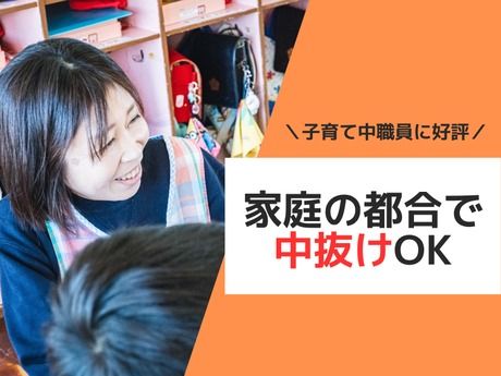 シフト制 勤務時間 7:30~18:30の間で1日6時間程度 ※時間・勤務日数は相談可能 例 9:00~15:00または16:00までの勤務 例 お子さんが学校に行っている間だけの勤務 平日働きやすい時間帯だけの勤務でOKです 「朝の家事を終えてから働きたい」 「夕方家族が帰る前に帰宅したい」 などお気軽にご相談ください♪ ※週3日~OK ※扶養内勤務可 ※Wワーク、副業可 ※休憩時間は法定通り ※残業ほぼなし、持ち帰りは基本なし ※行事の日に出勤していただけると嬉しいです