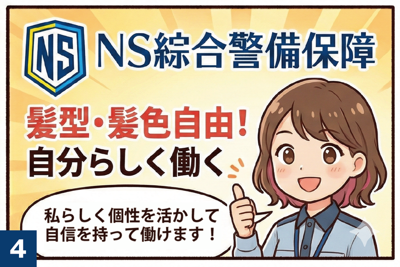 仕事内容 \週1日~OKで、シフトは完全自由♪/ 見た目の自由度も最大級! 髪色・髪型自由×ヒゲ・ネイルOK✨ 「自分らしいまま働ける」って、心がラク。 年齢に関係なく、のびのび働けます◎ ❖ 副業・Wワーク(平日のみ)にもおすすめ ❖ ―・―・―・―・―・―・―・―・―・―・―・―・― ・本業が休みの日だけ働きたい ・今の収入にプラスしたい そんな方も大歓迎!✨ ライフスタイルに合わせて働きながら +αの収入で生活にもハリが出ます♪ ─────────────────── ……⭐POINTをサクっと紹介⭐…… ─────────────────── ✅週1日~勤務OK ▶シフトは完全自由制 ▶週1勤務の場合は土日祝は除く ✅髪型・髪色・ヒゲ・ネイル自由! ✅名古屋市・近郊中心/直行直帰OK ✅日給11,000円~(キャンペーン適用) ▶日払い対応OK!(規定あり) ✅未経験歓迎!法定研修あり ✅空調服・防寒具など無料貸与 ✅年齢・経験・学歴一切不問 ✅副業・Wワーク(平日のみ)OK ✅短期スタート→長期切替も可能 ✅若手~シニアまで幅広い年齢層活躍中! ※応募者多数の場合、募集を締め切る 場合があります。お早めにご応募下さい。 ─────────────────── ………⭐お仕事内容について⭐……… ─────────────────── 交通誘導を行う警備員スタッフとして 下記のお仕事をお任せします✨ …【仕事内容は大きく分けて2つ】… ────────────────── ①歩行者や車両の誘導 ────────────────── ▨安全な通行ルートの案内 ▨事故や混雑を防ぐ見守り ────────────────── ②現場の安全確認 ────────────────── ▨状況に応じた声掛けや周囲チェック ▨安全確保に必要な配慮 - ✅未経験歓迎! →20時間の法定研修で安心スタート♪ ✅勤務地は名古屋市内中心・近郊! 交通費全額支給&直行直帰もOK! ✅装備品はすべて無料貸与◎ ─────────────────── ……⭐資格取得で次のステージへ⭐…… ─────────────────── 現場経験を積んだ先には、 資格取得支援制度でキャリアUPも可能。 警備業務検定などの 国家資格にも挑戦でき “手に職”をつけて長く働けます。 現場リーダーや隊長→管理・指導員など 役職ポジションも目指せますよ! 「現場で終わらない」 そんな警備キャリアも 着実に築ける環境です◎ ┏━━━━━━━━━━━━━━━━┓ ❖ NS綜合警備保障ってこんな会社 ┗━━━━━━━━━━━━━━━━┛ 名古屋市に根ざした地域密着の警備会社。 60代・70代の採用実績も豊富で、 未経験から始めた方が多数活躍中です♪