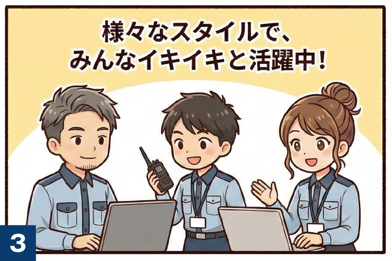 求めている人材 ✅学歴不問 ✅経験不問 ✅未経験大歓迎♪ \60歳以上のシニアも活躍中!/ 「年齢的に新しい仕事は難しいかも」 そんな不安をお持ちの方も ご安心ください♪ 50代・60代・70代の方も 元気に活躍中です◎ \フリーター・Wワーク(平日のみ)歓迎!/ 「空いた時間で働きたい」 「本業や予定と両立したい」 そんな方もご安心ください♪ 20代・30代・40代の方も、 自分のペースで無理なく活躍中です◎ ―――――――――――――― ⭐こんな方に向いています⭐ ―――――――――――――― ◎定年後も無理なく働きたい ◎年金の足しに収入を得たい ◎外で体を動かして働きたい ◎安定して働ける警備会社を探している ◎副業・Wワークで働きたい ◎自分の都合に合わせて働きたい ◎空いた時間を有効活用したい ―――――――――――――― ⭐こんな経験を活かせます⭐ ―――――――――――――― 警備・交通誘導・施設警備 イベント警備・駐車場警備 商業施設誘導・パーキングスタッフ 現場作業・ドライバー などのご経験がある方は 即戦力としてご活躍いただけます♪ 年齢の条件と理由:あり(例外事由2号・18歳以上(警備業法による))