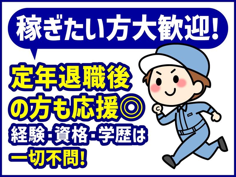 求めている人材 *未経験歓迎 *学歴不問(中卒・高卒歓迎) *資格不問 *経験不問 *倉庫作業未経験者歓迎 *ミドル・シニア活躍中 *定年退職後の方も歓迎 *ハローワークでお仕事探し中の方も歓迎 *異業種出身の方も活躍中 運転免許も不要です! \こんな方歓迎!/ ・物流センターなどで仕分けや軽作業、 ピッキングの経験がある方 ・箱詰めや袋詰め、シール貼り、品出し、 ラベル貼りなどの軽作業アルバイト経験がある方 梱包作業や工場・倉庫勤務が 初めてのスタッフも多数活躍しています!