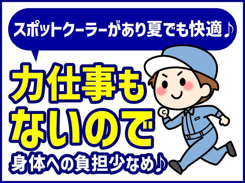 職場環境 スポットクーラーやストーブあるので夏も冬も比較的過ごしやすい環境です! 現在50~60代スタッフがメインで活躍中!60代以上のスタッフも3名在籍しています!