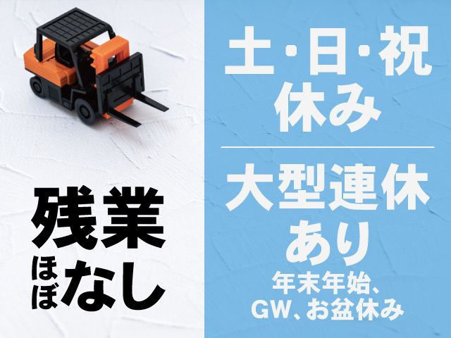 NEW!新着求人!【土日祝お休み】【日払いOK】フォークリフトを使って製品を移動し、無理なく働ける