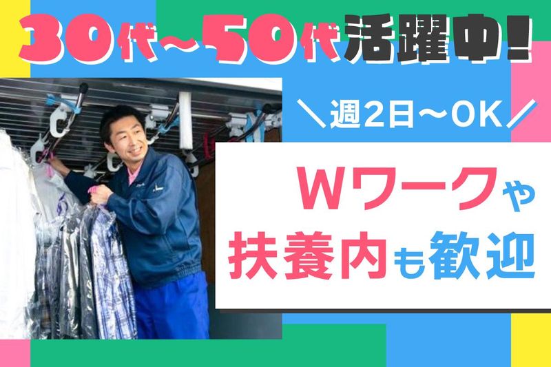 仕事内容 <この春、新しい自分でスタート> ⭐ ドライバーデビュー歓迎 ⭐ ⭐ ルート配送で安心◎ ⭐ ⭐週2日~シフト融通バッチリ⭐ ⭐ 土日は時給UP ⭐ ⭐ 男女ともに活躍中 ⭐ クリーニング店での商品の回収、納品 配送業務をメインにお任せします! (( 具体的には )) 1日5店舗程度を3~4回巡回します。 空いた時間には、 工場内での簡単な仕分け作業 などもお手伝いいただきます。 ★基本ルート固定で安心◎ 仕事量によっては早めに 帰宅できる場合もあります。 ★最初は同乗研修からスタート! 未経験の方も安心してスタート可。 配送エリアは各工場の周辺のみで、 遠方への配達はありません! ……………………………………………… 30~50代まで幅広く活躍中 ……………………………………………… ドライバー未経験だったスタッフや ブランクから復帰したスタッフも在籍! ルートは決まっているので 一度道を覚えてしまえばラクラク! 気づけばあっという間に勤務終了! 運転が好きな方や空いた曜日で 効率よく働きたい方にピッタリです! 重量物は扱わないので、 男女ともに活躍できる職場です♪ ……………………………………………… 柔軟シフトでプライベート充実 ……………………………………………… 週2日から勤務OKなので、 自分の生活スタイルに合わせやすい♪ 土日は時給1200円以上! 少ない日数でも安定した収入をGET! もちろん、週5日で ガッツリ働きたい方も大歓迎です◎ 週1日だけの勤務なども お気軽にご相談ください! ▼▼ 他勤務地でも同時募集中 ▼▼ 【松戸工場】 千葉県松戸市松戸新田123-3 【岩瀬工場】 千葉県松戸市岩瀬613-1 >>応募時に希望をお聞かせください♪
