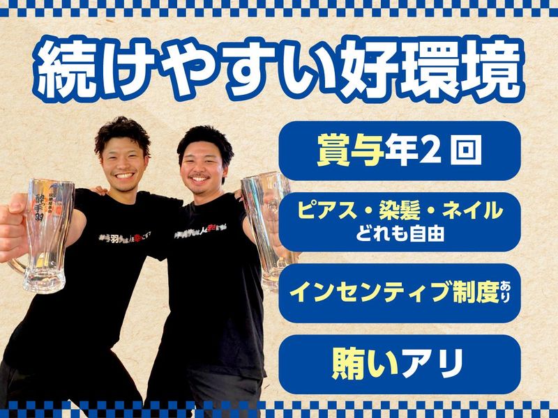 仕事内容 <4月末オープン予定の新店舗募集> 「ずっと今のままでいいのかな」 …そんな不安を抱えるあなたへ。 新しい環境・新しい店舗で 私たちと新しいスタートをきりませんか? 「正社員になりたいけど、 自由がなくなるのはイヤ」 「フリーターの自分って ちゃんと評価してもらえるのかな」 こんな風に思ったことはないですか? “これまで通り”のあなたのままで、 働き方は大きく変わらずに。 そして、これまで頑張ってきた 時間も経験も、 決してムダにしないように。 全国に『酔っ手羽』を展開するS.H.N株式会社は、 今までやってきたことを評価して、 あなたを「正社員」として迎えます!  ̄ ̄ ̄ ̄ ̄ ̄ ̄ ̄ ̄ ̄ ̄ ̄ ̄ ̄ ̄ ̄ ̄ ̄ ̄ ✅オープニングスタッフ採用! 今回募集するのは 4月末開店予定の新店の店舗スタッフ。 お店もスタッフ・お客さんとの関係も イチから作り上げていく楽しさがあります。 店舗運営に関しては 既存店で培ってきたノウハウを活かして 行うため、ご安心を! ✅「正社員=休めない」はもう古い! 「自由な働き方」は、正社員でも同じ。 当社なら、月6〜10日の間で、 【自分で】休日数を選択可能です! 6日休みでガッツリ稼ぐ人もいれば、 10日休んで趣味優先の人もいます。 もちろん有給取得だって当たり前。 連休もOKです。 “ちゃんと休める”からこそ、 仕事にも100%の力で向き合えます! ✅「頑張り」は給与に反映 ・忙しくても手を抜かない ・周りを見て動く ・新人に声をかける ・ドリンクもホールも どっちも回す こういうこと、 今まで普通にやってきていませんか? こんな“当たり前”のことも 当社では評価の対象! もちろん評価は、 年3回ある【昇給チャンス】で 給与にしっかり反映。 ちゃんと変わっていく実感があります。 実際に未経験で入社した後、 コツコツ続けて給与アップした人も! 数字だけじゃなく、 “普段の動き”も見ている会社です。  ̄ ̄ ̄ ̄ ̄ ̄ ̄ ̄ ̄ ̄ ̄ ̄ ̄ ̄ ̄ ̄ ̄ ̄ ̄ ■仕事内容 ✅お客様のご案内 ✅オーダー対応 ✅料理・ドリンクの提供 ✅簡単な調理・盛り付け ✅片付け・清掃 など まずはお客様のご案内やオーダー対応など、 できることからお任せします。 「包丁を握ったことがない」 「接客は初めて挑戦する」 なんて先輩たちも、 今では店舗を支える中心メンバー。 一歩ずつ成長していきましょう! ■「酔っ手羽」とは? 昭和レトロな懐かしさと、 現代的な活気が絶妙に混ざり合った 独自の空間。 それが「酔っ手羽(よってば)」の 大きな特徴です。 マニュアル通りの無機質な接客ではなく 目の前のお客様を笑顔にするための 「遊び心」を大切にする社風だからこそ、 スタッフ一人ひとりの個性が お店の味になります。 そんな活気ある現場で、 あなた自身の個性を活かしながら、 お客様と一緒に最高にハッピーな空間を 作り上げていきましょう。 ■仕事も、遊びも、全力で! 忙しい時間帯は、自然と 声をかけ合いながら回しています。 困っている人がいたら フォローするのが当たり前! 一人で抱え込むことはありません。 みんなで全力で頑張ったら 年に一度の社員旅行へ! 毎年沖縄に行って 海やBBQなどを楽しんでいます。 普段は真剣に仕事をして、 遊ぶときは思い切り遊ぶ! だからこそ、 「このメンバーと、また来たい!」 「来年も行くために、頑張ろう!」 そう思える関係性が、 自然とできています。  ̄ ̄ ̄ ̄ ̄ ̄ ̄ ̄ ̄ ̄ ̄ ̄ ̄ ̄ ̄ ̄ ̄ ̄ ̄ 未経験でも、自分に自信がなくてもOK! ✅頑張りが評価されて、 給与に反映される ✅休みもしっかりある ✅チャンスが多い ✅仕事も人生も楽しめる そんな環境で、 新しいスタートを切りませんか?  ̄ ̄ ̄ ̄ ̄ ̄ ̄ ̄ ̄ ̄ ̄ ̄ ̄ ̄ ̄ ̄ ̄ ̄ ̄ <<S.H.Nで働くメリット>> ✅ピアス・染髪・ネイル自由の正社員! ✅全国600店舗展開の安定成長企業◎ ✅住宅手当・まかないなど福利厚生充実♪ ■充実の福利厚生でバックアップ♪ ✅昇給年3回 ✅賞与年2回 ✅インセンティブ制度 ✅月最大10日休み ✅引越手当(1律10万円)※規定あり ✅住宅手当(1律2万円支給)※規定あり ✅社内レクリエーション ✅独立支援制度 など ■キャリアの“詰まり”がない S.H.Nは、全国に続々と 新店を展開する成長企業! 今年の出店計画は30店舗以上です。 新しいお店ができる = 新しいポジションが生まれる = チャンスが増える! 未経験入社3年で店長になった社員も! 「年齢」や「社歴」よりも、 行動した人にチャンスが回ります。 ■実力に応じてキャリアアップ 店舗運営を一通りマスター、その後は… 実力を正当に評価して昇格・昇給に反映! ◇副店長:月給33万円~35万7000円 ◇店長候補:月給36万円~38万円 ◇店長:月給40万円~ ◇エリアマネージャー:月給45万円~50万円  ̄ ̄ ̄ ̄ ̄ ̄ ̄ ̄ ̄ ̄ ̄ ̄ ̄ ̄ ̄ ̄ ̄ ̄ ̄ ⭐いきなり正社員が不安な方は、 1週間の「お試し体験入社(時給制)」から 始めることも可能です。 まずは一度、あなたのこれからのことを お話ししませんか?