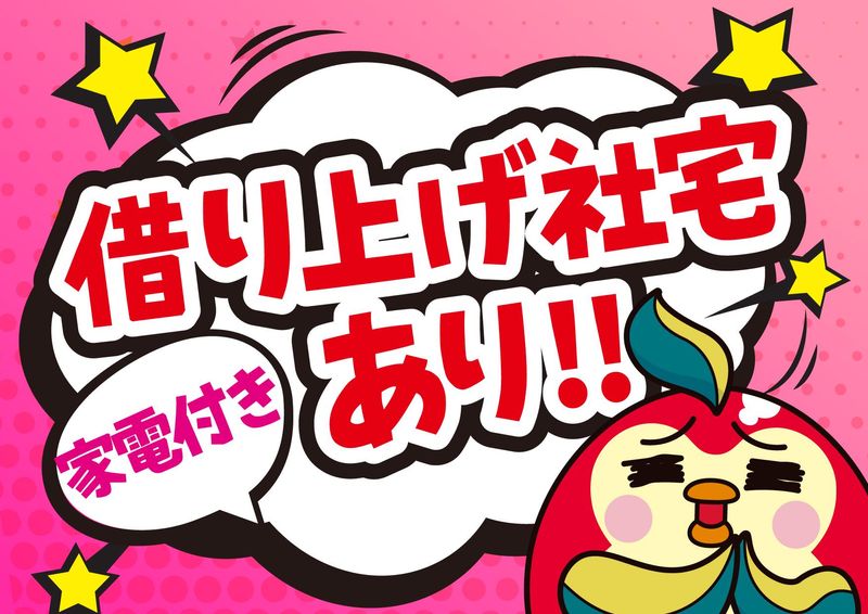 【保険制度】 雇用保険、労災保険、健康保険、厚生年金 待遇・福利厚生 【福利厚生】 *入社祝い金10万円支給 →入社後研修期間5日目に現金支給 *借り上げ寮社宅制度(家具・家電付き) →家賃2万5000円程度 *昇給あり *有給休暇 *リフレッシュ休暇 *社会保険完備 *産休・育休制度あり *交通費規定支給