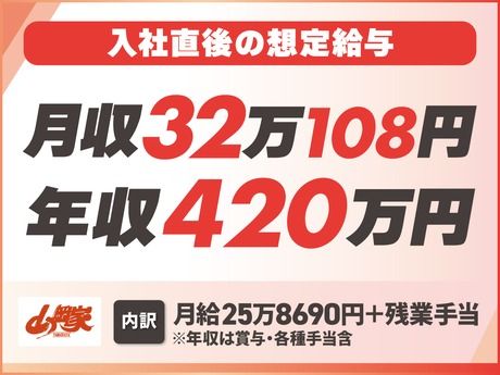 仕事内容 【年収420万円】経験を活かしながら、負担を抑えて高収入◎! 《飲食経験者歓迎》※ジャンル不問 深夜でも多くのお客様にご来店いただく山岡家。 「飲食店経験」や「接客スキル」を活かしながら、 生活リズムを整えて働きたい方にもオススメ! ★らーめん店の経験がなくても大歓迎です! <夜勤専従で高収入!> 入社1年目で、年収例420万円可能!! 家族との時間も自分時間も 圧倒的に増える働き方で、転職直後から高収入◎ ====================== 【30~40代から未経験で入社した社員も多数】 SNSやメディアで日々話題になる山岡家のラーメン。 ― でも、選ばれているのはラーメンだけではありません! 実は「働く場所」としても多くの人に支持され、 30~40代で転職した男性社員も多数活躍中! ====================== 成長加速&エリア拡大中に伴い、 正社員を“積極採用中”!(2024年実績:180名以上) \ 四国初進出! / 4月3日、香川県に「高松中央インター店」がオープン予定! \ 博多区にも出店 / 4月22日、九州福岡に「福岡月隈店」がオープン予定! 福岡市内2店舗目、博多区初出店です!! 【スムーズに業務を始めていただくために…】 入社後は、茨城県つくば市にある自社の トレーニングセンターで研修を実施(3泊4日) ※研修中の交通費・宿泊費は全額会社負担! ※研修中もしっかり給与支給で安心スタート ====================== ◆「週休3日制の正社員」のオススメPOINT◆ 【1】22時~出勤、週休3日×年間休日156日  ̄ ̄ ̄ ̄ ̄ ̄ ̄ ̄ ̄ ̄ ̄ ̄ ̄ ̄ ̄ ̄ ̄ ̄ ̄ ̄ 働き方改革の一環として導入した、 「週休3日制・夜勤専任」の正社員制度。 転居を伴う転勤がなく、地元でライフスタイルに 合わせた働き方が可能になりました! <30~40代で入社した男性活躍中> 家庭を持った方にも選ばれている山岡家。 住み慣れた場所で長く働きたい方や、 家族との時間をゆったり取りたい方にも◎! 【2】東証スタンダード上場企業の安定基盤  ̄ ̄ ̄ ̄ ̄ ̄ ̄ ̄ ̄ ̄ ̄ ̄ ̄ ̄ ̄ ̄ ̄ ̄ ̄ ̄ ■残業代は1分単位で全額支給(みなし残業なし) ■昇給・賞与は年2回!! ■プライベートの都合に考慮したシフト希望休、 有給の取得も可能!(土日・連休の取得もOK) ■男性社員の育休取得実績もあり! ====================== 【お仕事について】 まずはホール業務からスタートし、 店舗全体の流れや雰囲気をつかみます。 その後、キッチン業務や洗い物、 仕込みなども担当していただきます。 <将来的には…> 接客・調理だけでなく、 衛生管理・設備管理など、店長不在の 時間帯の店舗運営も含めてお任せをします。 \\ 中途社員も段階的に学べます! // ◆冊子のマニュアルや、店舗のタブレットでも 視聴できる動画教材などをご用意。 何を・どの順番で覚えればいいかが明確で安心! ◆全店舗、食券制&設備が整った店内。 丁寧な接客と、スープ・ネギ・チャーシュー すべてを「お店で手作り」にこだわる山岡家の スタイルに集中しやすい環境です! ※接客・マニュアル・動画はすべて日本語です。 ※また、衛生記録なども日本語で記入します。 ====================== 【週休2日制へのキャリアチェンジも可】 まずは週休3日制でプライベートと両立。 「もっと働きたい」「キャリアを積みたい」と 思ったら、週休2日制へ転換もできます◎ 実際に、働き方を変えながら キャリアアップを叶えた社員も在籍中! <キャリアチェンジした社員の声> 「子育てと両立しやすい週休3日制の夜勤で入社。 家庭と両立できる範囲での異動など、 柔軟に対応してもらえたので安心して働けました。 そのうちに仕事が楽しくなり、週休2日制の キャリアコースへ転換。キャリアアップが叶い、 今では店長に!」※入社3年目・店長・30代 *店長職の収入例 年収580万円(月給43万円+賞与年2回+各種手当) 【丸千代山岡家について】 全国に190店舗以上のラーメン店を運営中。 売上好調!前年比平均10%以上の成長率! 47都道府県への出店を目指し、新店OPENも続々。 セントラルキッチンを設けず 全店直営&店内手作りにこだわる姿勢で、 根強いファンもたくさんいます! リピート率はなんと75%超え!(自社調べ) <売上高> 186億7600万円(2023年1月期) 264億9400万円(2024年1月期) 345億8500万円(2025年1月期)*前年比130.5%! 《HP》https://www.yamaokaya.com/ 《採用HP》https://recruit.yamaokaya.com/