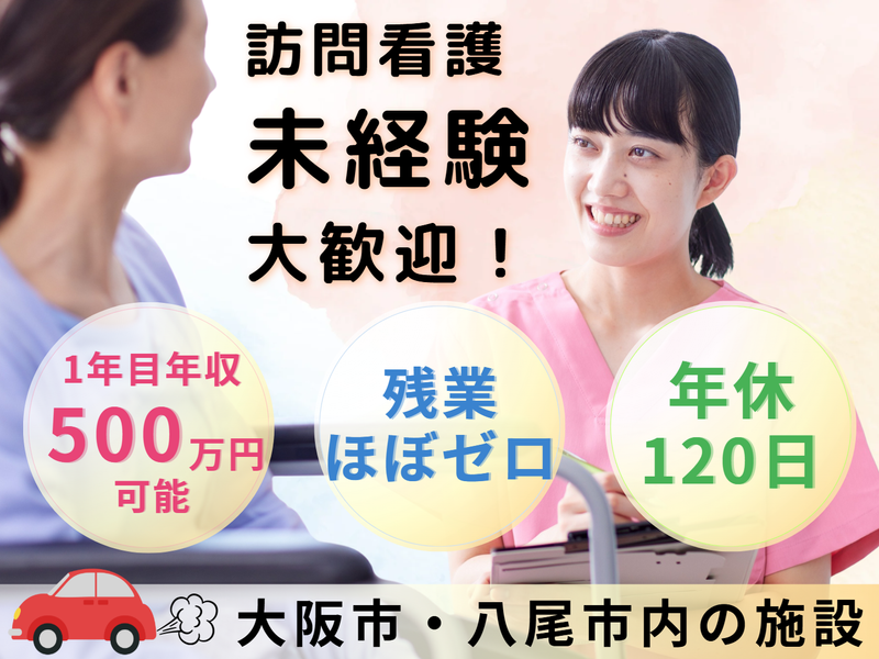 仕事内容 ✨求人point✨  ̄ ̄ ̄ ̄ ̄ ̄ ̄ ̄ ̄ ̄ ̄ ̄ ̄ ̄ ̄ ̄ ✅月給35万円~+賞与年2回 ✅年間休日120日以上/副業もOK◎ ✅訪問エリアは大阪市・八尾市の近隣のみ ✅訪看未経験歓迎!1か月の同行研修あり ✅車で直行直帰&訪問件数1日2〜3施設のみ! ✅残業ほぼゼロで夜勤なしも相談可能♪ ◢◤お仕事内容◢◤  ̄ ̄ ̄ ̄ ̄ ̄ ̄ ̄ ̄ ̄ ̄ ̄ ̄ ̄ ̄ ̄ 「患者さんの退院後の生活が気になって診てみたい」 「病棟以外にも、もっと幅広く経験を積みたい!」 そんなあなたに、ぜひ“訪問看護師”という働き方をおすすめしたいです! お仕事は、患者さんとの対話や健康管理がメイン✨ 医療行為は、バイタルチェック/点滴/カテーテル管理などが中心です。 <1日のスケジュール例> 日勤 9:00|自宅から1施設目へ直行 ▼ 13:00|2施設目へ訪問 ▼ 18:00|そのまま車で帰宅 ※日によっては3施設訪問することもありますが、頻度も少なく、 残業が発生しないようスケジュールはしっかり調整していますので、ご安心ください♪ #未経験からでも働きやすい!  ̄ ̄ ̄ ̄ ̄ ̄ ̄ ̄ ̄ ̄ ̄ ̄ ̄ ̄ ̄ ̄ ◆ 未経験でも安心のサポート体制 ・1ヶ月間の同行研修あり ・マニュアル完備&定期勉強会あり ・看護技術の確認やオンコール対応も、丁寧にレクチャー 「自分も未経験から始めたからこそ、気持ちがわかる」 そんな先輩が、親身にサポートしてくれる環境です! ◆ 働きやすさ抜群!一般的にイメージする”在宅訪問”や”自転車移動”ではありません! ①当ポジションは基本的に〈施設訪問〉です! ②訪問施設数は〈1日2〜3施設〉と少なめ! *一般的に在宅訪問の場合は、1日に6-8件訪問するところがほとんどです。 ③〈車移動〉で直行直帰できる *雨の日もカッパを着て自転車で訪問する、なんてことはなく、天候に左右されないので安心です♪ ④オンコールは日中と夜間の当番制です!緊急訪問時の手当・代休もあり✨ *対応頻度は、多くて日中は1日1回、夜間は3ヶ月に1回程度と非常に少ないです! \こんな方におすすめ/  ̄ ̄ ̄ ̄ ̄ ̄ ̄ ̄ ̄ ̄ ̄ ̄ ̄ ̄ ̄ ̄ ・患者さんの日常生活をサポートしたい方 ・仕事とプライベート、どちらも大切にしたい方 ・ストレスフリーな環境で働きたい方 「入院中ではなく、患者さんたちの日常生活が気になる」 「未経験だけど、訪問看護の仕事にも挑戦してみたい」 「自分のペースで無理なく、でもやりがいをもって働きたい」 … 「このままでいいのかな」 と思ったら、環境を変える合図かもしれません。 まずはお話ししてみたい、というだけでも全く問題ないです。 お気軽にご応募ください♪