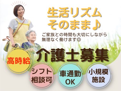 小規模施設で働きやすい環境♪日勤帯のみで月収25万円以上可能!週3日~相談OK|車通勤OK◎