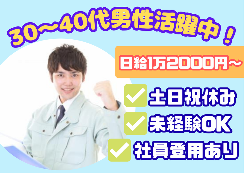 30・40代男性活躍中✅未経験歓迎✨土日祝休み&残業ほぼなし
