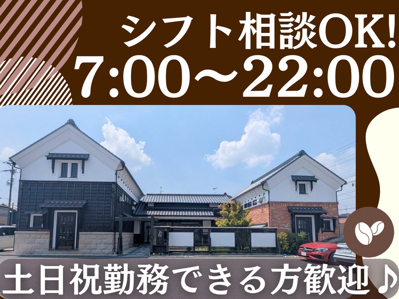 仕事内容 珈琲の香りに癒されながら お洒落な喫茶店で働きませんか*。・ 一一*< シフト融通バッチリ >*一一 スキマ時間を活用してサクッと稼げる! 「家事や育児と両立して働きたい」 「かけもちしてしっかり稼ぎたい」 という方にぴったりです! ⭐扶養内・Wワークで働く方も 多数活躍中! 子育て中・子育てが落ち着いて 仕事復帰したい方も大歓迎です◎ 週1日~・1日2h~OK! 勤務時間・曜日もお気軽に ご相談ください♪ 心にゆとりをもって、 あなたのペースで働きませんか? 一一一*< 仕事内容 >*一一一 お客様の接客・ご案内、珈琲を淹れたり、 簡単な調理を行います。 未経験・パート復帰の方も大歓迎! 丁寧にお教えしますので、 ご安心くださいね! 一一一*< こんなお店 >*一一一 新鮮な煎りたての珈琲豆にこだわり、 オーダーが入ってから豆を挽き一杯一杯、 丁寧にコーヒーをお淹れしています。 お客様にゆっくり珈琲を楽しんで頂けるよう 店内のBGMはクラシックで統一するなど、 こだわりを持ったお店です。