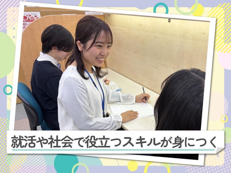 職場環境 未経験から始めた 大学生が多数活躍中! アルバイト自体が 初めてという方も大歓迎です! 「勉強は好きだけど、 人に教えたことがなくて心配」 という方も心配不要! まずは1日の流れや授業の進め方など 丁寧な研修からスタートします! 喫煙所:なし(敷地内全て禁煙)