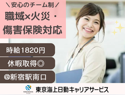 仕事の内容 \大手ならでは!ブランク復帰でも安心/ ◆座学研修→OJT…教育体制しっかり ◆繁忙時やお休み時も安心!6名のチーム制 *先輩スタッフさん多数×安定勤務中!気さくな方が多く質問しやすさ◎ 【基本情報】 雇用形態:派遣社員 雇用期間:長期(3カ月以上) └ 1月~開始日相談可能 就業時間:9:20~18:00(休憩60分) 【必須条件】 ◆傷害保険の取扱い経験ある方 ◆パソコン:基本操作(入力~修正) *お仕事開始までに 損保募集人資格の取得をお願いします 【お仕事内容】 ・更新書類の発送 ↓ ・代理店計上 ・申込書不備チェック ・電話による満期案内~更改 └インカム使用 ・照会応答 ・見積書、申込書作成 ・契約変更手続き など ※種目:火災、団体傷害、カード付帯の海外旅行・ペット・ゴルファー保険等 ※お客様(社員やOBOGの方々)は穏やかで優しい方が多いので安心して対応いただけます♪ 【環境面等】 @新宿駅南口スグ! 大手企業×職域・OB契約の火災・傷害保険を扱うチームでのご勤務です ・20代・30代・40代・50代の多い職場 └子育てに理解ある主婦・主夫活躍中 ・ランチタイムは休憩スペース利用OK ・オフィスカジュアル内で服装自由 【福利厚生等】 ・社会保険完備 ・ベネフィット・ステーション ・定期健康診断あり ・禁煙オフィス!煙苦手な方も安心 ・平日のみOK!土日祝休み ・年間休日120日以上&お休み相談可 └有給休暇、年末年始休暇など ○●嬉しいPOINTたくさん!●○ 履歴書不要!開始日相談ください/駅歩5分以内の駅チカ環境/ブランクOK!主婦・主夫活躍中/お休み取りやすさ◎!子育てに理解のある職場/繁忙期でも残業月10時間以内!忙しい時期はあらかじめ分かります