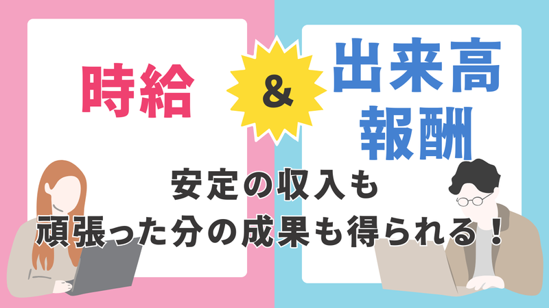 時給1,500円~5,500円 給与詳細 基本給:時給 1500円 〜 5500円 ・【お試し期間】時給2,000円(30時間まで) ・【本採用後】時給1,500円~5,500円+インセンティブ ※平均時給2,000円以上 【時給UP・インセンティブ・昇給条件】 時給UP条件①:アポ本数が規定以上で+100~1000円 時給UP条件②あなたが獲得したアポで契約に至った件数が規定以上で+100円~3000円 最低時給UP:3ヵ月間で250h以上勤務して遅刻欠席が規定以下であれば、ベースの固定時給が1900円までUP可能 インセンティブ:全体のアポ数に対して個人の貢献割合が高い人ほど高額のインセンティブ支給 【給与例】 給与例 ・お試し期間:時給2000円×30h=6万円 ・本採用後:時給1900円×6.5h×22日=月収27万円以上 ・経験者層:時給3200円×6.5h×22日+インセンティブ=月収50万円以上可
