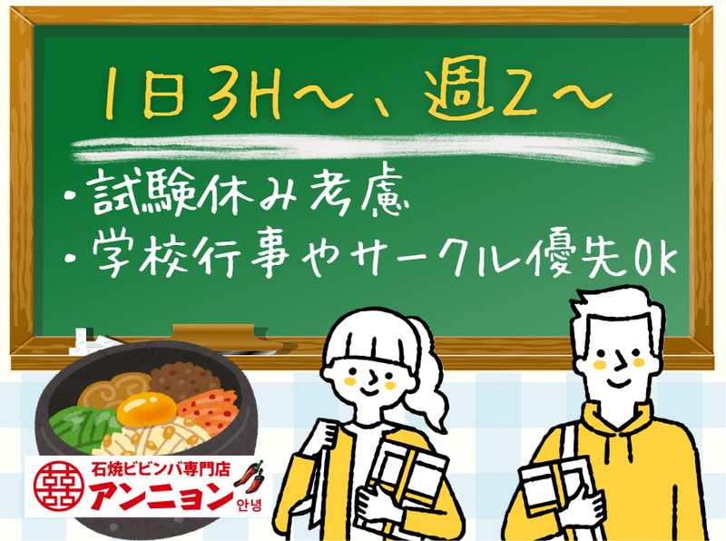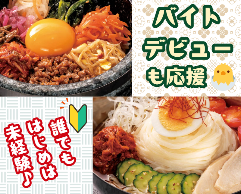 求めている人材 \未経験者歓迎/ ・学歴不問 ・年齢不問 ・アルバイトデビューも大歓迎 ・ブランクありの方も応援 ・副業、WワークOK ・高校生&大学生歓迎 ・フリーター歓迎 ・主婦(夫)歓迎 ・扶養内勤務OK <こんな方にピッタリ> ・活気あふれる明るい職場で働きたい ・食べることが好き ・韓国料理が好き ・スキマ時間で稼ぎたい ・扶養控除内で働きたい ・シフトは相談しながら決めたい