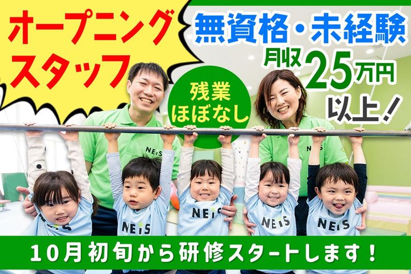 【仕事内容】 ✨オープニングスタッフ募集✨ 奈良県初出店!全国に160教室以上を展開する【ネイス体操教室】の一員として、体操指導だけでなく、受付や保護者とのコミュニケーションなど幅広い業務を担当していただきます。 未経験スタートが約9割!特別なスポーツ経験は問いません。充実した研修制度があるので、体操経験がなくても安心してデビューできます。 子どもたちの成長を間近で感じられる、やりがいのあるお仕事です。 ○:-・+・-:○:-・+・-:○:-・+・-:○ 【オススメポイント】 ✅未経験OK!基礎から学べる丁寧な研修あり ✅年間休日120日!週休2日×残業少なめ ✅若手が活躍中!20代の管理職登用も多数 ○:-・+・-:○:-・+・-:○:-・+・-:○ 【主な業務内容】 2歳~小学生が対象の体操教室でのインストラクターのお仕事です。 具体的には… ■子どもの運動の補助・指導 ■受付・入会の事務対応 ■教室準備 ■保護者とのコミュニケーション ■バク転教室の業務 …子どもから大人まで全年齢対象。幅広い生徒さんの指導をお願いいたします。ご自身はバク転ができなくてもOKです! ※1時間ごとにクラスを入れ替えながらレッスンをおこないます。 ※1講師に対して、生徒数は最大8名。インストラクター2名で指導します。 【1日の流れ(例:平日)】 13:30 出勤・教室準備・事務作業 14:00 休憩 14:30 ミーティング 15:00 レッスン開始(1コマ50分)※最大8名を2名体制で担当 19:15 終礼・片付け 20:50 退勤 ※午前中にレッスンがある日もあります。 【ネイス体操教室とは?】 日本初の子ども向け体操教室チェーンとして全国に展開し、160教室以上を運営しています。 コンセプトは「子どもの未来をつくるサードプレイス」。 「自分はできるんだ!」「自分ってすごい!」という自己肯定感を育むことを目指し、日々子どもたちと向き合っています。 日々の小さな「できた!」に立ち会い、ともに喜び合える、かけがえのない時間をあなたも一緒に作っていきませんか? ==================== 特別なスキルなしで挑戦できる安心環境 ==================== インストラクターの9割が未経験からスタート。特別なスポーツ経験がなくても大丈夫! 基礎からしっかり学べる研修制度と、現場での丁寧なサポートが整っているので安心です。 レッスンは最大8名を2名体制で担当するので、一人に負担が集中することもありません。 これまで販売や接客、事務など異業種から転職して活躍しているスタッフが多数います。 ==================== 「できた!」を一番近くで見守れる仕事 ==================== 「逆上がりができた!」 「跳び箱を跳べた!」 そんな子どもたちの成長の瞬間を、一番近くで見られるのがインストラクターの魅力です。 時には失敗して涙する子もいますが、一緒に挑戦を続け笑顔に変わる瞬間は感動そのもの。 「先生のおかげ!」と駆け寄ってくれる姿に、心からやりがいを感じられる仕事です。 ===================== オープニングならでは!ゼロからのスタート ===================== 新規開校のため、全員がほぼ同じスタートラインから始められます。 既存の人間関係に入る不安もなく、同期スタッフとともに成長していける安心感が魅力です。 最初は研修を通じて基礎から学び、仲間と自然に絆を深めることができます。 「一体感」を大切に、仲間と共に子どもたちの未来を応援できるお仕事です。 【求人ID-YIN】