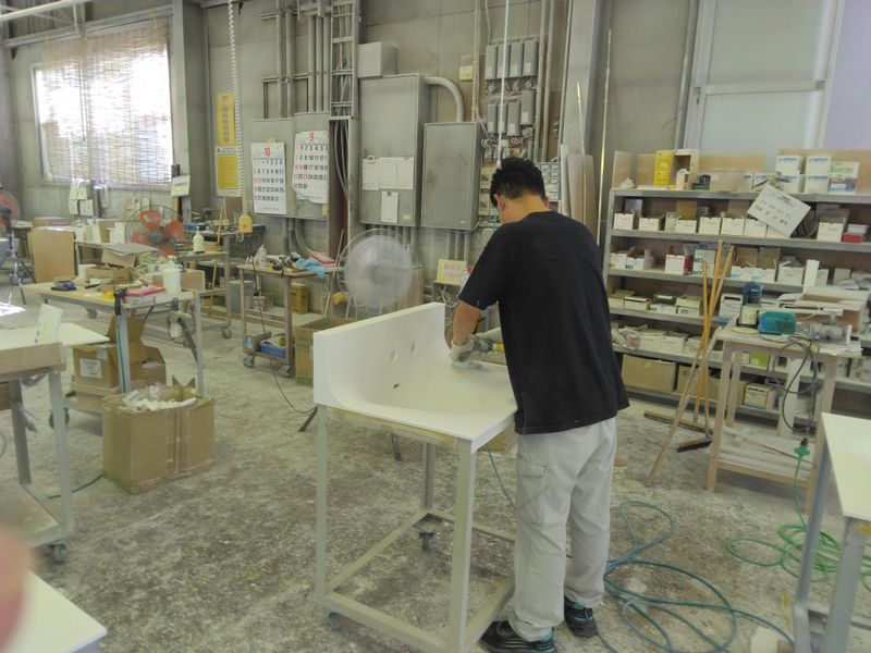人工大理石の研磨組立スタッフ