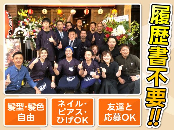仕事内容 お客様のご案内・オーダー伺い・料理の提供・片付け・ドリンク作成・レジ業務など、ホール業務全般をお任せいたします! ただ働くだけでなく、接客業務を楽しんでください♪ ❖**・・・**❖**・・・**❖**・・・**❖**・・・**❖ <こんな方も歓迎!> ・扶養内で働きたい方 ・バイトデビューや未経験者 ・人気店・おしゃれ居酒屋で働きたい方 ・ワイワイ楽しく働きたい方 ・学校と両立したい大学生 ❖**・・・**❖**・・・**❖**・・・**❖**・・・**❖ *お店について* とりかわ串の概念が変わる。 福岡名物として愛され続けてきた~名代かわ焼き~を求め、 全国各地からお客様が来店されます。 活気溢れる店内には、常に10本、20本!と焼鳥の注文が飛び交います。 各種飲み会から友達との一杯まで様々なシーンで利用いただいております。
