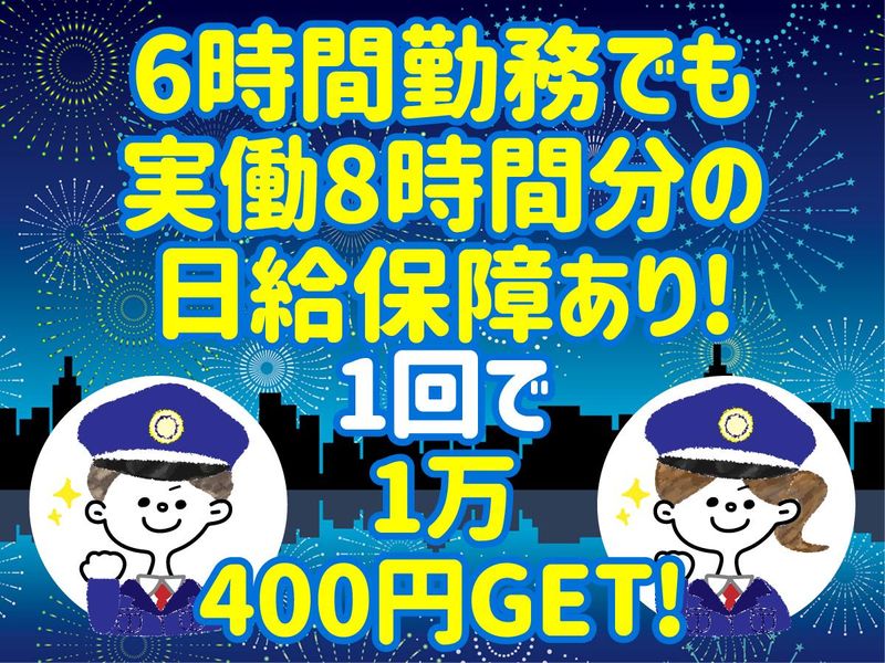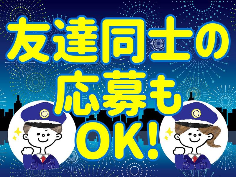 求めている人材 ✅こんな方におすすめ □ 空いてる日にちょっと働きたい □ イベントの雰囲気が好き □ 同世代と楽しく働きたい □ 優しい先輩がいる安心できる職場がいい 未経験歓迎 学歴不問 性別不問 経験不問 無資格歓迎 ブランク歓迎 WワークOK 副業OK かけもちOK <こんなオシゴトをお探しの方におすすめ!> 「交通誘導警備員」 「警備員」「警備員 アルバイト」など 「アルバイト パート」から「正社員」を目指したい方も歓迎します! <下記のような経験がある方も歓迎!> 「大学警備」「施設警備」「施設警備員」「駐車場管理」 「深夜 バイト」「夜間アルバイト」 「夜間警備」「夜間施設警備員」「常駐警備」「守衛」 その他、接客や販売スタッフ、飲食店での勤務経験があるスタッフも活躍中です! 【活躍中のスタッフの声】 「バイト先で友達が増えた!」 「気さくで優しいスタッフばかり!」 「楽しいからあっという間!」 「高時給だからサクッと稼げる!」 「お昼ご飯が出る現場もあって、食費が浮いてうれしい!」 年齢の条件と理由:あり(例外事由2号・18歳以上 (警備業法により))