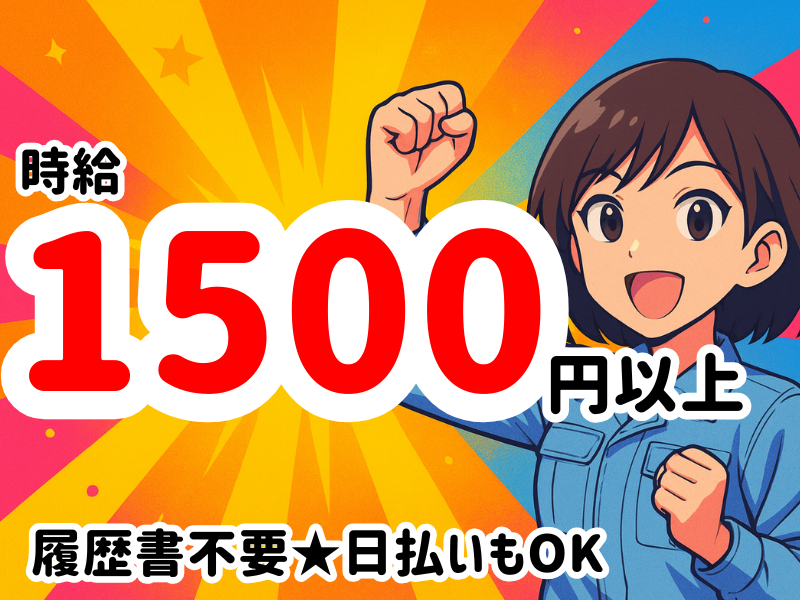 アピールポイント: ーーーーーーーーーーーーーーーー キレイな個室寮完備*なんと家賃0円! 家族で一緒に住める広いお部屋もあり* 新生活スタートできちゃいます! ーーーーーーーーーーーーーーーー * 1500円スタートの超高時給! * 家賃0円の寮完備*家具家電レンタルOK * オープニング募集 * 食堂あり(1食440円程度) * キレイな休憩室や自販機など完備 * 重たい物ナシ * 夜勤は遅くても2時まで!負担が少ない* * 友達と応募OK * 定着率抜群の人気案件 * レンタカーあり*基本的な費用は0円 * 正社員登用制度あり ===前払い制度あり=== 日払いも、週払いもOKです! 今月ピンチ…そんな時に超便利! スマホのアプリでサクッと申請! \お気軽にご相談ください!/