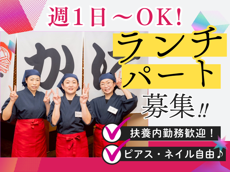 仕事内容 ୨୧┈┈┈┈┈┈┈┈┈┈┈┈┈┈┈┈┈୨୧ ✨この求人のオススメポイント✨  ̄ ̄ ̄ ̄ ̄ ̄ ̄V ̄ ̄ ̄ ̄ ̄ ̄ ̄ ̄ ✅9~15時までのランチタイム募集♪♪ ✅週1日~シフト自由!平日だけもOK! ✅ママさん活躍中✊家庭と両立できます ✅髪色自由!ピアスOK!オシャレに☆ ✅履歴書不要!スグに応募できます♪ ୨୧┈┈┈┈┈┈┈┈┈┈┈┈┈┈┈┈┈୨୧ ⏩オシゴト内容  ̄ ̄ ̄ ̄ ̄ ̄ ̄ ̄ 【ホール業務】 ■お客様のご案内 ■オーダー受付→提供 ■料理やお酒の提供 ■会計対応 ■店内清掃 ...etc オーダーはLINEのQRを読み取って お客さまにオーダーしていただくので、 オーダーミスの心配もありません♪ 【キッチン業務】 ■食材の仕込み ■調理や盛り付け ■洗い物・後片付け ...etc 料理が出来ない方でも大丈夫! 盛り付けなどマニュアルがある作業から お願いしていきます! お仕事は徐々に 慣れていけるので大丈夫です! できることから任せていくので安心♪ ―――*―――*―――*―――*――― ⏩未経験・ブランク歓迎♬サポート充実!  ̄ ̄ ̄ ̄ ̄ ̄ ̄ ̄ ̄ ̄ ̄ ̄ ̄ ̄ ̄ ̄ ̄ ̄ ̄ 未経験者やブランク明けの方を応援します✊ 仕事中に分からない事があれば先輩社員が イチから丁寧に教えるので心配ナシ! 遠慮せずどんどん質問しちゃいましょう♪ ―――*―――*―――*―――*――― ⏩シフト自由!家庭との両立も楽々♪  ̄ ̄ ̄ ̄ ̄ ̄ ̄ ̄ ̄ ̄ ̄ ̄ ̄ ̄ ̄ ̄ ̄ ̄ 週1日~、9-15時で1日4時間~OK✊ お子様のお迎え時間での調整も可能です◎ 家事・育児と両立する主婦さん活躍中! 「平日のみ」「土日のみ」「扶養内」 「家事のスキマ時間で働きたい」...etc まずはご希望の働き方をご相談ください♬ 家庭と両立/お子さんの都合優先! なども大歓迎✨ブランクがあって、 社会復帰したい方ももちろん歓迎です! ―――*―――*―――*―――*――― ⏩オシャレ自由!個性はそのままに!  ̄ ̄ ̄ ̄ ̄ ̄ ̄ ̄ ̄ ̄ ̄ ̄ ̄ ̄ ̄ ̄ ̄ 当店は髪色自由&ピアスOKです♪ アナタのスタイルで働けちゃいます! 自分らしく働ける環境が整ってます! ノビノビと楽しく働いてみませんか✨ ―――*―――*―――*―――*―――