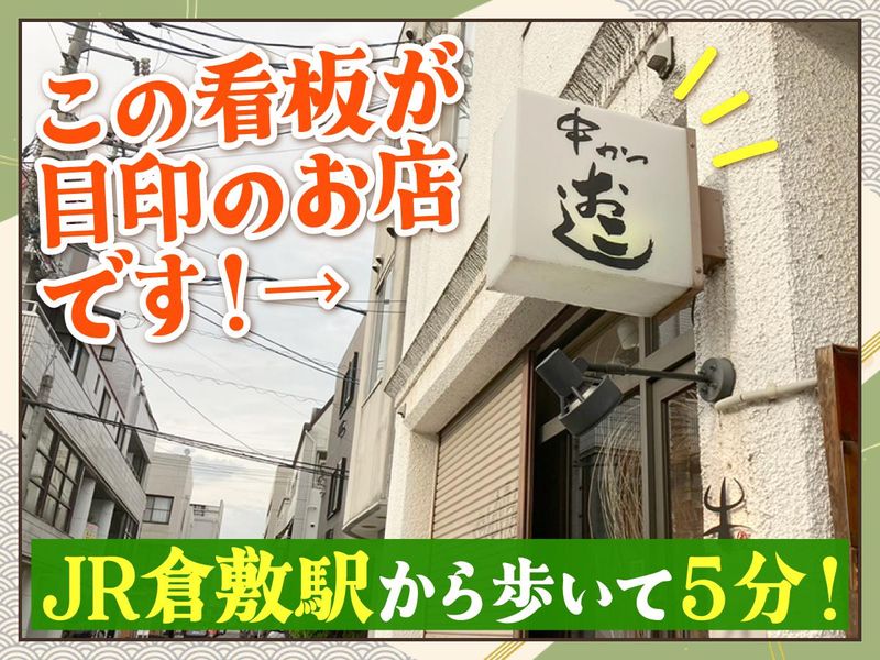 職場環境 カウンターのみの串かつ専門店! 倉敷駅から徒歩5分で通勤ラクラク♪