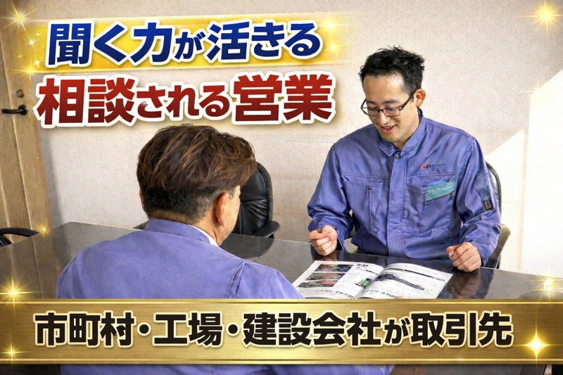 求める人材: 【必須】 普通自動車免許所持 【こんな方を歓迎します】 ・営業経験がある方 ・基本的なPC操作ができる方 ・建設、土木、環境関連の知識や経験がある方 ・現場職、配送、サービス職などの経験がある方 ・ただ売るだけではなく、相手の話を聞いて信頼を積み重ねる営業がしたい方 ・お客様の困りごとを聞き、現場を見ながら提案につなげる仕事がしたい方 ・現場確認や見積作成まで踏み込める営業に魅力を感じる方 ・安定した法人顧客と長く関係を築く営業を目指したい方 営業未経験でも、挑戦したい気持ちがあれば大丈夫です。 イチからしっかりお教えします。