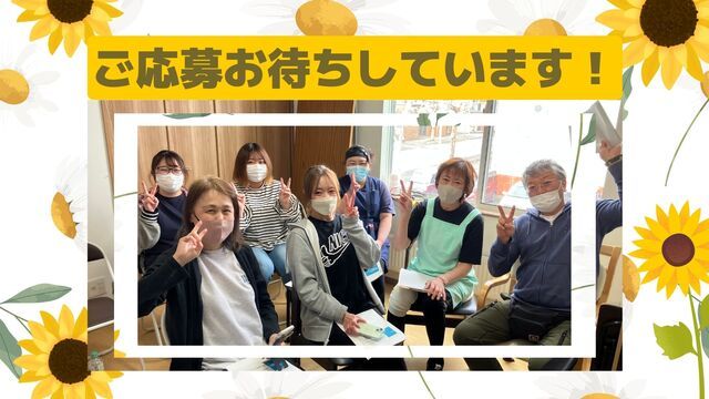 応募資格 無資格・未経験OK! ※研修制度があるので、未経験の方やブランクがある方も歓迎です <歓迎条件> ・介護業務経験のある方優遇 ・運転免許あればなお可 <こんな人と一緒に働きたいです> ・どんなことでも挑戦したい人 ・なんでも聞ける人(わからない事はどんどん聞いて下さい) ・どんな人とでも話すのが好きな人 ・笑う人!楽しく仕事ができる人 ・プライベートでも夢中になれることがある人 ・家族を大事にしている人 ・自分のおじいちゃんおばあちゃんとの思い出がいっぱいある人