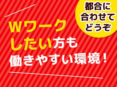 資格 ・未経験OK ・主婦(夫)の方活躍中 ・ダブルワーク(かけもち)、副業OK ・中高年の方活躍中 ・カムバック・ブランク応募も歓迎! (以前、他店で働いていたなど) ハローワークで仕事をお探し中の方や 就職が決まるまでのつなぎでという方も大歓迎!