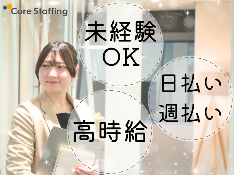 選考プロセス 最初の面談はオンラインからでOK! 履歴書不要&服装自由で気軽にできる! ※現在は研修制度やオリエンテーションなども ほぼオンラインで開催中! <スマホでサクッと応募OK> 気軽に応募できちゃうのがラクチン ≪お仕事決定までの流れ≫ WEBよりご応募⇒弊社よりメール・SMSにてご連絡 ⇒お電話でのお仕事紹介 ⇒オンラインまたはご来社での面談(選択制) ⇒お仕事スタート! 【登録地】 株式会社コアスタッフィング 本社 所在地:東京都新宿区西新宿3-2-11 新宿三井ビルディング2号館7階 電話番号:0120-731-202
