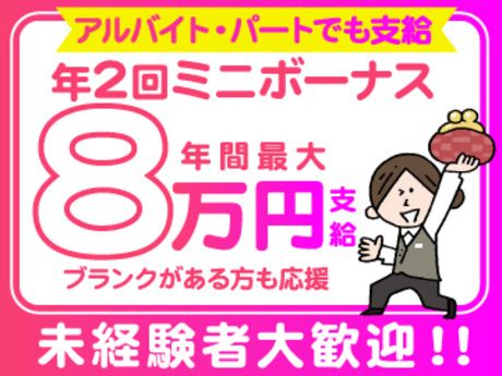 【保険制度】 雇用保険、労災保険、健康保険、厚生年金 待遇・福利厚生 【福利厚生】 ・ミニボーナス年2回(7月・12月)→年間最大8万円 ・昇給(年1回)20円 ・制服貸与 ・有給休暇 ・育休産休