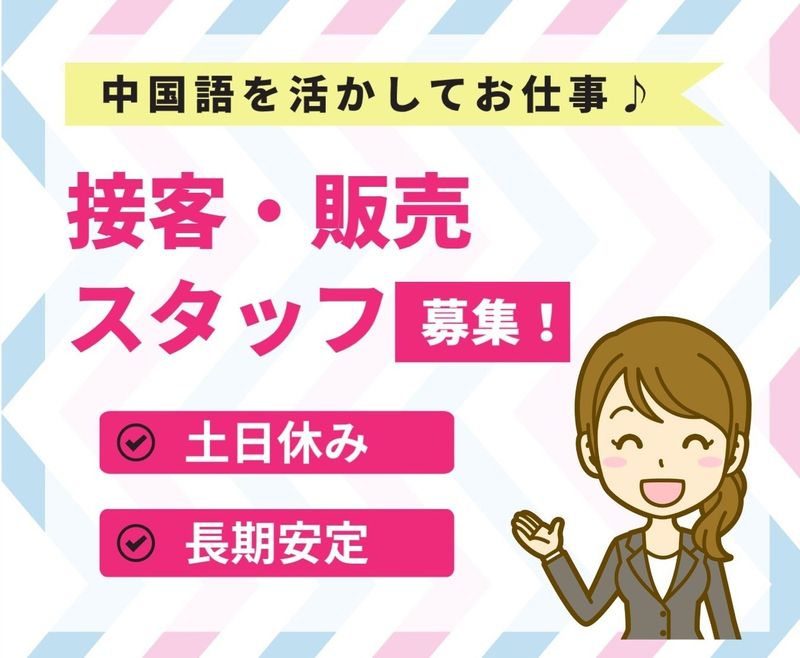 仕事内容 〓〓 お仕事内容詳細 〓〓 地元で愛される酒造会社の新店舗の販売員の募集です。 ・来店したお客様への接客販売(中国語できる方) ・レジ作業。 ・その他付随作業 など はじめは先輩社員がサポートするので安心です! お客様と中国語で触れ合いながら楽しく接客販売をお願いします。 日本語と中国語が話せて、スムーズな会話ができる方、スキルを活かして楽しくお仕事できます 〓〓 ポイント 〓〓 ・5月~6月オープンの新店舗、オープニングスタッフ! ・長期安定 ・制服なし ・駅近 徒歩三分 〓〓〓〓〓〓〓〓〓〓 職場見学ができるので、安心して勤務開始が可能! お問い合わせ・ご応募お待ちしております(^^)/