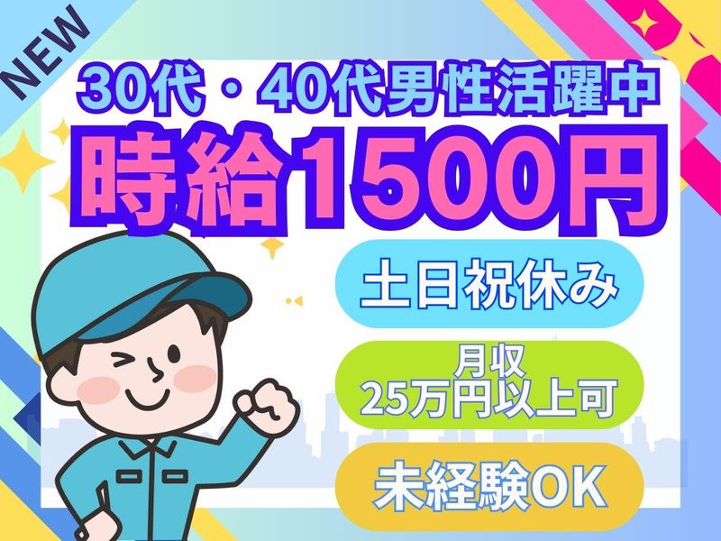 仕事内容 \高時給❗月収25万円可❗/ ⏩有名な企業で日勤のお仕事⛅ マニュアルありのカンタン作業だから 未経験の方・ブランクある方も大歓迎✊ ⭐幅広い世代が活躍中♪✨ ⭐空調設備ありのカイテキ空間❗ ⭐嬉しい♪残業相談可&土日祝休み✨ ┌─┐┌─┐┌─┐┌─┐┌─★ │P││O││I││N││T│ ★─┘└─┘└─┘└─┘└─┘ ✅経験にかかわらず誰でも時給1500円 ✅土日祝休みでプライベート充実✨ ✅マニュアル通りに進めれば大丈夫♪ ┏━━━━━┓ ┃お仕事内容┃ ┗━V━━━┛ 栄養ドリンク剤や軟膏・座薬等の梱包 ◆製品を機械で梱包 ◆数量の入力(PC) ◆製品をまとめる資材を 機械に入れてチェック! ◆開梱してビンを出す →機械にセットしてチェック! ⭐クリーンルーム内でのお仕事✨ 空調設備完備で、まったく寒くない! ⭐丁寧にじっくりコツコツ作業を 進めたい方にぴったり♪ 立ち作業なので、適度な運動にも◎ ⭐食品工場や工場での製造経験、 ライン作業の経験がある方大歓迎✨ ╭━━━━━━━━━━━━━╮ ✨他にもメリットたくさん!✨ ╰━━━━━━v━━━━━━╯ ☕日勤のみ&残業なし⏰✨ 土日祝休みでプライベートとの両立も◎ 17:05定時で夕方以降の時間も有意義に 過ごせます♪長く安心して働ける職場✊ ☕職場環境充実❗ 休憩室・更衣室・ロッカー完備! 電子レンジ・冷蔵庫あり、社食あり 車通勤OK!駐車場代無料◎ ﹌﹌﹌﹌﹌﹌﹌﹌﹌﹌﹌﹌﹌﹌﹌﹌﹌﹌﹌ ✨パーソルフィールドスタッフの強み✨ ﹌﹌﹌﹌﹌﹌﹌﹌﹌﹌﹌﹌﹌﹌﹌﹌﹌﹌﹌ ⏩長期安心・安定の大手パーソルグループ で働きませんか? ⏩先輩スタッフや専任スタッフのサポート 体制も手厚いので安心スタートが可能♪ ⏩スタッフの定着率も良く 待遇も充実しているので働きやすさ抜群✨ //////////////////////////////////////// 来社なし!ご自宅でラクラク行える オンライン登録&電話面談実施中❗ ╭───────・⭐・・─╮ お電話での応募も大歓迎です❗ TEL▶▶ 0120-507-073 ╰─・・⭐・───────╯ ////////////////////////////////////////