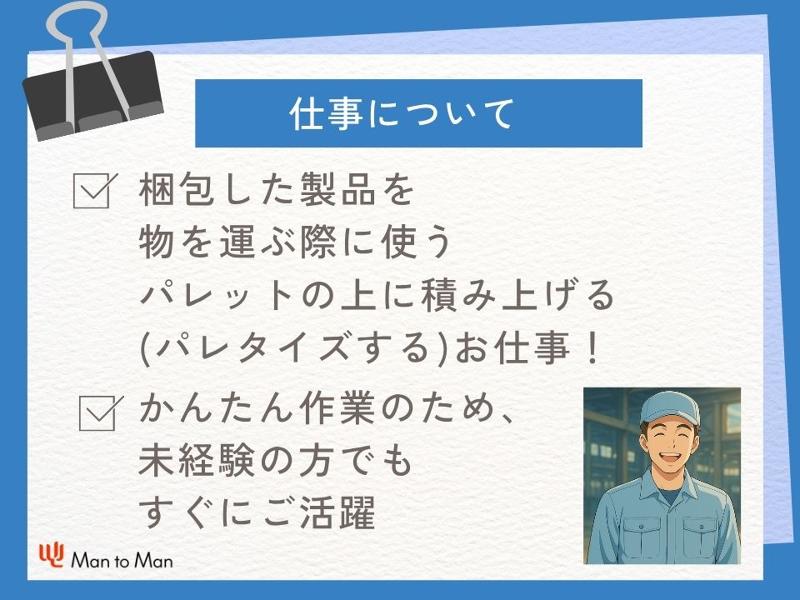 アピールポイント: 【日勤のみ】梱包した製品の運搬スタッフ