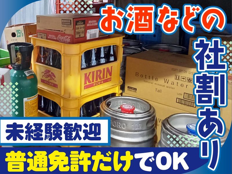 求めている人材 ✅未経験OK ✅年齢不問・学歴不問 ✅要普通自動車運転免許 *【以下の方、歓迎】* ◆腰を据えて長期的に働きたい方 ◆プライベートの時間を大切にしたい方 ◆ドライバーの仕事に興味がある方 ◆新しいことに挑戦したい方 ※お酒の配達の仕事の経験がある方は、 給与の面で優遇します! *【以下の経験者も歓迎】* ◎業界問わず、ドライバーや運転手の経験者 ◎配送や配達、軽貨物の業務の経験者