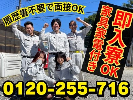<入社祝金3万円支給>履歴書不要【即入寮可:Wi-Fi無料】3食・家具家電・生活必需品付き!日払い可