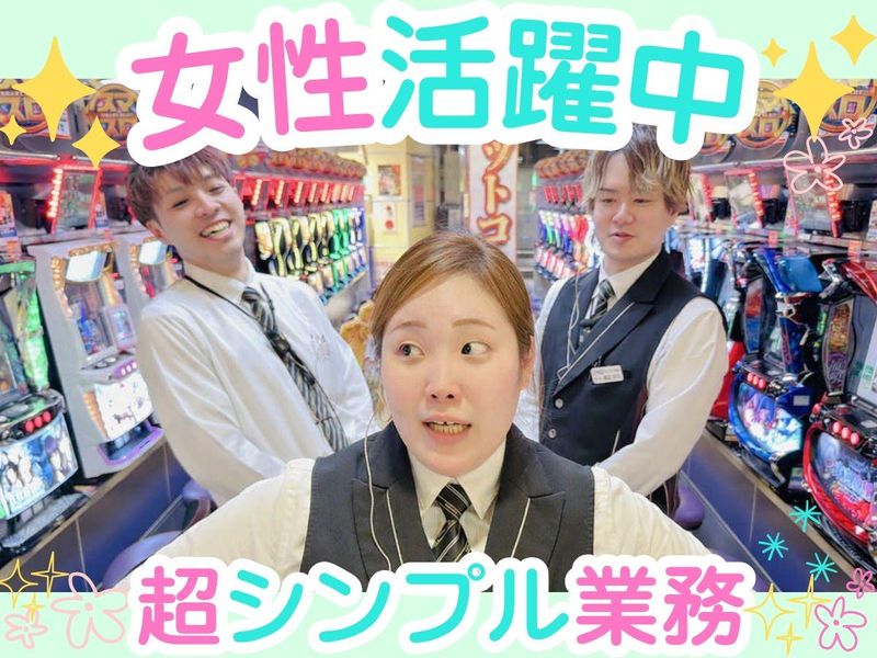 仕事内容 ⭐⸜⸜20代~30代女性活躍中♬⸝⸝⭐ ☆★:・.――――――――――――.・:☆★ ✨未経験スタート大歓迎‼重い物なし✨ ✧✧自分らしく働ける安心ホールワーク✧✧ ☆★:・.――――――――――――.・:☆★ ◤ ̄ ̄ ̄ ̄✨ここがポイント✨ ̄ ̄ ̄ ̄◥ ⏩未経験・アルバイトデビューも歓迎‼ ⏩重い玉運びなし!力仕事はありません♪ ⏩週2日~OKの自己申告シフト制! ⏩高時給1400円~でしっかり稼げる◎ ⏩ネイル・ピアス・髪色自由! ⏩女性スタッフも多数活躍中! ⏩インカム支給で困ったときもすぐ相談OK ◣__________________◢ ✨お仕事内容  ̄ ̄V ̄ ̄ ̄ ̄ ホールの見回りや景品交換、 台の清掃、お客様のご案内などを行う ホールスタッフのお仕事です。 「アルバイトが初めて」 「パチンコはやったことがない」 そんな方も大歓迎‼ やさしい先輩たちがイチから丁寧に 教えてくれるので安心して始められます◎ ―――――――――― ✨具体的なお仕事例 ―――――――――― ✅ホールの見回り ➡店内を巡回しながら お客様対応を行います ✅景品交換 ➡カウンターで景品交換などを担当します ✅台の清掃 ➡遊技台まわりをきれいに整えます ✅お客様のご案内 ➡お困りのお客様へ丁寧に対応します ⏩分からないことはすぐに質問OK!  ̄ ̄V ̄ ̄ ̄ ̄ ̄ ̄ ̄ ̄ ̄ ̄ ̄ ̄ 先輩の中には女性スタッフも多数! 分からないことや困ったことがあれば 気軽に聞ける環境です♬ ⏩先輩スタッフがつきっきりでサポート  ̄ ̄V ̄ ̄ ̄ ̄ ̄ ̄ ̄ ̄ ̄ ̄ ̄ ̄ ̄ ̄ ̄ お仕事は先輩スタッフが しっかりそばでサポート! 未経験の方でも安心して 少しずつ慣れていけます♪ ⏩独り立ち後もインカム支給で安心  ̄ ̄V ̄ ̄ ̄ ̄ ̄ ̄ ̄ ̄ ̄ ̄ ̄ ̄ ̄ 全員にインカムを支給しているため、 困ったときや確認したいときも すぐに相談できます◎ ════════════════════ ╒━━━━━━━━━━━━━━━━━━╗ ⭐オシャレも楽しめる働きやすい "職場"⭐ ╘━━━━━━━━━━━━━━━━━━╝ 店内は分煙なので、たばこの匂いが つきにくいのもポイント! 電子たばこOKのエリアもありますが きつい匂いではありません。 また、お仕事に支障が出ない範囲で 髪型・髪色、ネイル・ピアスOK♪ 自分らしさも大切にしながら 働くことができます! ╒━━━━━━━━━━━━━━━━━╗ ⭐未経験でも始めやすい、安心の環境⭐ ╘━━━━━━━━━━━━━━━━━╝ 重い玉運びはなく、 力仕事がないので始めやすい環境です。 少しでも気になった方は、 お気軽にご応募ください‼