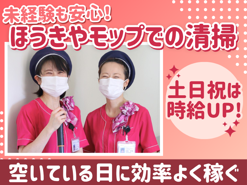 仕事内容 \週の空いてる日に効率よく稼ぐ★/ 下記時間帯で選択可能!※週2日~5日OK! (1)8:00~17:00 (2)9:00~18:00 (3)9:00~14:00 ✨ ほうきやモップなどの見慣れた道具 ✨ 病棟&病室の清掃はありません! ✨ 体調不良によるお休み対応も可能! ✨ <嬉しい♪>土日祝は時給50円UP! ✅ 仕事内容  ̄ ̄ ̄ ̄ ̄ ̄ ̄ ̄ 病院内の通路・診察室等の清掃をお任せ! ※病棟および病室の清掃はありません。 ◎使用する道具 「ほうき」や「モップ」など 見慣れた道具ばかりです! 身体に負担なく勤務できます。 <未経験も安心スタート!> 親切・丁寧を心がけてお教えするので、 未経験・お仕事復帰の方もご安心ください◎ - * 勤務先 * - 江南厚生病院(請負先) 住所:愛知県江南市高屋町大松原137番地 アクセス:名鉄犬山線「江南駅」より車8分 ✅ 働くスタッフの声  ̄ ̄ ̄ ̄ ̄ ̄ ̄ ̄ ̄ ̄ ̄ ̄ 高校生の子どもがいるので、 「14時まで」など帰宅前に仕事を 終えられるのが助かります。 同じような境遇の仲間が たくさんいるので心強いです! (家庭と両立するスタッフAさん) 他の日は別のアルバイトをしていて、 Wワークできる仕事を探していました。 空いている日に働けるので、 好きなアーティストのライブの 遠征費をしっかりと稼げています! 楽しみが増えて嬉しいです! (フリーターのスタッフBさん) 定年後の新しい生活リズムとして、 夕方から働くのが意外と合っています。 適度に体を動かせて健康維持もできて、 趣味の合う新しいお友達もできました。 ここで働き始めてよかったです。 (定年後に働くスタッフCさん) 【例】 9:00~14:00⇒お仕事タイム(効率的に集中) 14:00~17:00⇒休憩・準備時間 17:00~20:00⇒家事・買い物・自分時間 20:00以降⇒家族との時間・夕食・くつろぎ