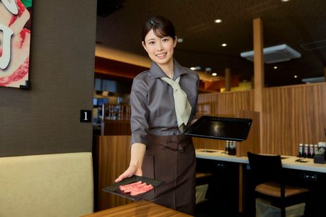 仕事内容 <ホール>多くのチェーン店を運営する大手企業!ジュージュー楽しい焼き肉店スタッフ \主婦(夫)活躍中!【短時間OK】/ \焼き肉チェーン専門店でのお仕事/ ◆◇◆◇◆◇◆POINT◆◇◆◇◆◇◆ 【ランチのみ】フリーター・主婦活躍中 【短時間勤務OK】スキマ時間勤務できる♪ 【割引有】すき家・はま寿司などグループ割引有 【WEB面接可】応募当日の面接や最短3日後~勤務可! ******************* <お仕事内容> ◆ホール業務- ・お客様のご案内 ・お料理のご提供、片付け ・レジ会計 ・配膳 ・ドリンクづくり、 デザートづくり ・清掃 など お肉を運ぶ配膳が主なお仕事なので 部位など細かい知識は すぐに覚えなくても大丈夫です! ‐‐‐‐‐‐‐‐‐‐‐‐‐‐‐‐‐‐‐‐‐ お客様の9割以上が食べ放題コースのご利用。 はじめにどんなコースか伺ったあとは、 タッチパネルで注文されたお肉を準備し提供します。 キホン的なお仕事は 1~2週間で覚えられちゃいます。 <効率化アップの秘訣> 当店では洗うのが大変なアミは使い捨て。 アミにこびりついたコゲや油を落とす必要なし! スタッフのために業務効率化の工夫をしています◎ <従業員ベネフィット制度有> お得なポイントを勤続に応じて配布 すき家・はま寿司など、 ゼンショーグループで使える割引制度あり! スタッフインタビュー「お客さんの笑顔が一番のやりがいです」 ホールスタッフは 特にお客さんと関わる機会が多く、 挨拶やお礼を言われることも多いので、 より身近にお客さんの 喜んでいる姿を見ることができます。 熟成焼肉いちばんは常に 新鮮なお肉や食材をご提供。 お客様卓に霜降り牛肉を配膳し 【焼き】をサポートすると 「わーっ」と拍手がある時もあったりと 楽しみながら働けます◎