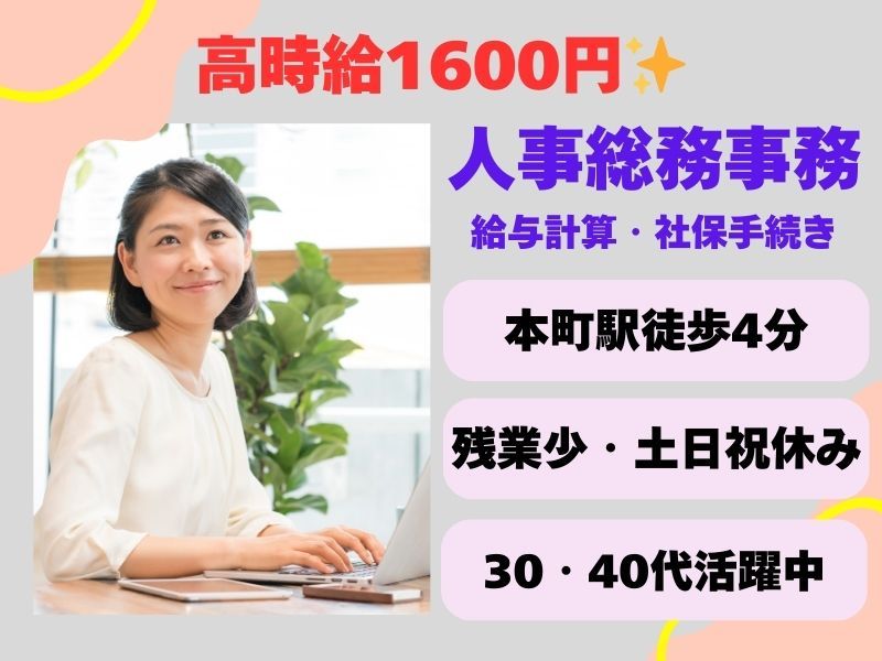 概要 人事総務事務 募集職種 総務・人事・労務 雇用形態 派遣社員 募集内容 この求人のポイント 人事総務事務/社会保険完備/交通費支給/大阪市西区/fA5072g【人事総務事務 社保手続き等】時給1600円/メーカー/残業少なめ <★ここがポイント★> ◎高時給1600円! 月収例 268800円【残業代別】 (1600円×実働8時間×21日勤務例) ◎プライベートと両立しやすい ・残業少なめ(月10hまで) ・土日祝休み ◎弊社スタッフ直雇用実績あり! 将来を考えた働き方が出来る! ◎駅チカ 大阪メトロ中央線「本町駅」徒歩4分 ……………………………………………… 【お仕事内容】 ▼人事総務事務 ○給与計算 ○社会保険手続き ○勤怠管理 など ご経験は必要ですが、 引継ぎがあり 丁寧に教えていただけます! ……………………………………………… 【ご就業先は…】 ◆国内トップシェア! 産業用機器メーカー *フロア:80名ほど *部署:男性5名・女性3名 *オフィスカジュアル 穏やかな社風&働きやすい職場です! ……………………………………………… 少しでも 「気になる!」 「詳しく聞いてみたい!」 と思われた方、 ぜひエントリーお待ちしております! 食堂・休憩室・服装:休憩室/更衣室/オフィスカジュアル 【ご登録内容を確認後、ご紹介可能な場合のみご連絡いたします。ご応募いただいたお仕事以外にも、複数のご紹介が可能な場合がございます。応募フォームの「備考」欄よりご希望の職種(業務内容等)をお知らせください。】 勤務地: 大阪府大阪市西区 アクセス: 大阪メトロ中央線本町駅より徒歩 4分 業種・業界 人材紹介・派遣業 必須スキル・経験・資格 Word:既存修正/新規作成 Excel:修正入力/新規作成 勤務期間:長期(3ヶ月以上) 受動喫煙防止措置条項 屋内禁煙
