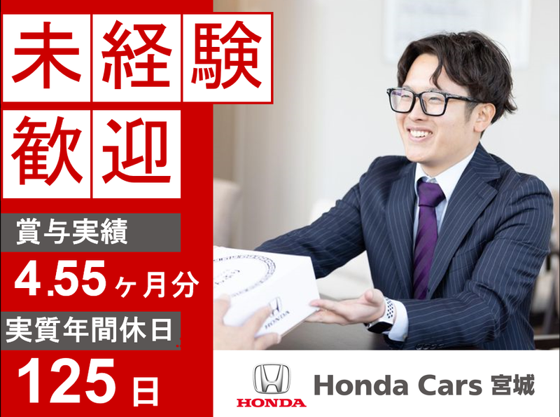 仕事内容 ✅ 未経験歓迎! ✅ 賞与実績4.55ヶ月分+インセンティブ ✅ 年収500万円以上も可能 ✅ 転居を伴う転勤なし ✅ 住宅手当 & 家族手当あり! 【仕事内容】 ――――――――――――――――――― Honda車の提案・販売からアフターフォローまでをお任せします。 当社では「売るだけ」「売って終わり」ではなく、長期的なお付き合いを大切にしています。 ”70%以上"が当社で購入いただいたリピーターのお客様で、 中には世代を超えて家族ぐるみでお付き合いのあるお客様もいらっしゃいます! お客様の“カーライフのパートナー”として長期的に関係を築いていけるお仕事です! 【具体的には】 ――――――――――――――――――― ■ ご来店〜ヒアリング 来店されたお客様に対し、まずは会話を通してライフスタイルやご希望を丁寧にヒアリング。 「通勤に使いたい」「子どもが生まれた」「休日にアウトドアを楽しみたい」など、 日常のシーンに寄り添った提案を行います。 ■ 提案・販売 Hondaの人気車種(FIT、VEZEL、N-BOXなど)を中心に、 安全性能・燃費・デザインなどを比較しながらご案内。 販売ノルマではなく、お客様満足を重視したスタイルなので、自然体で向き合えます。 ■ 納車・アフターフォロー 納車後も、定期点検や車検の案内、保険更新、買い替え相談などを通じて長期的にサポート。 「家族や友人を紹介したい」とご紹介につながることも多いです。 ※飛び込み営業や無理な営業はありません。 ※反響・紹介・リピート対応が中心です! 【入社後の流れ】 ――――――――――――――――――― ■ STEP1:入社時研修 お客様対応時のマナーや当社について学びます。 ■STEP2:新人営業研修 Honda車の基本知識や保険・ローン・査定の基礎などを 半年間かけてじっくり学んでいきます! ■ STEP3:店舗OJT 先輩と一緒にお客様対応を行いながら、 提案の流れ・見積もり作成・試乗対応などを実践で習得。 ■ STEP4:資格・スキルアップ Honda社の研修制度・販売資格制度も充実。 車や業界の知識ゼロからでも、段階的にスキルアップできます! 【しっかり稼いでキャリアアップを実現!】 ――――――――――――――――――― ✅成果に応じてインセンティブを支給! ✅実績次第でチーフ、店長などへの昇格も! ✅20代でチーフ、30代で店長として活躍中の先輩も多数! 【働きやすさもバッチリ◎】 ――――――――――――――――――― ✅残業は月10〜15時間程度 ✅火曜・水曜休みで予定も立てやすいです♪ ✅リフレッシュ休暇を含め実質年間休日は125日! 旅行や趣味の時間もしっかり確保できます! 【勤務地について】 ――――――――――――――――――― 店舗間の異動はありますが、転居を伴う転勤はありません! ※下記店舗でご希望の勤務地があれば、お気軽にご相談ください! ■大河原店 柴田郡大河原町高砂町4-4 ■船岡店 柴田郡柴田町西船迫2-2-10 ◆白石店 白石市福岡長袋字下河原58 ◆六丁の目バイパス店・U-Select 六丁の目バイパス 仙台市若林区六丁の目西町1-12 ◆扇町店 仙台市宮城野区扇町3-4-46 ◆中山店 仙台市泉区南中山1-38-7 ◆太白店 仙台市太白区砂押南町6-6 ◆富谷店 富谷市大清水1-31-1 ◆石巻西店 石巻市蛇田宇南久林13-2 ◆加美店 加美郡加美町字矢越294-4 ◆古川バイパス店 大崎市古川諏訪2-10-15