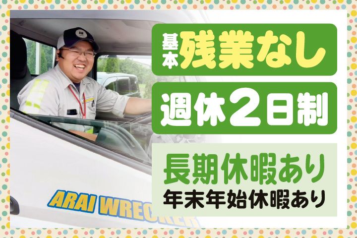 職種補足 【ロードサービス業務】事故車や故障車のトラブル対応など 雇用形態 正社員 企業ホームページ https://www.araiwrecker.com 採用ホームページ https://entori.jp/araiwrecker 社会保険 健康保険あり,厚生年金あり,雇用保険あり,労災保険あり 試用期間 あり 月給250,000〜300,000円 3ヶ月(期間短縮あり) 喫煙環境 屋内禁煙 担当者 採用係 受付先名 アライレッカー / 有限会社荒井商事 〒300-0871 茨城県土浦市荒川沖東2-16-20 TEL:029-843-3333 ※WEBからのご応募は24HいつでもOK