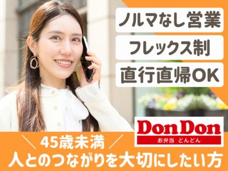その他 未経験OK、新卒・第二新卒歓迎、フリーター歓迎、主婦・主夫歓迎、長期歓迎、平日のみOK、昇給あり、賞与あり、交通費支給、月給20万円以上、車・バイク通勤OK、即日勤務OK、社割あり 【先輩スタッフのコメント】▼ 女性営業スタッフの声 (前職:カーディーラー) 以前は車のディーラー営業として 働いていましたが、当社に転職してからは 目標やノルマに追われることなく、自分の ペースでお客様対応ができています。 業種は違っても、 「お客様の声を聞く力」や 「提案力」は共通。 営業経験がしっかり活かせています。 お客様との対話で得た声が、 商品づくりに活かされることで、 店舗づくりに貢献できている実感があります。 上司との距離も近く、相談もしやすく 女性でも長く続けやすい職場だと 感じています。 【~こんな経験、前職が活かせる~】「人と話すのが好き」 それだけで、営業の素質あり! 営業未経験でも大歓迎! 「お弁当どんどん」の知名度があるから、 話を聞いてもらいやすく、 提案しやすい環境です。 まずは既存のお客様の訪問からスタートし 先輩が丁寧にサポートします。 提案の仕方や会話の進め方は 入社後にしっかり学べるので安心。 企業・団体向けにお弁当を提案しながら 新しい繋がりを作る楽しさも味わえます。 「人と向き合う仕事がしたい」 「売上だけでなく、関係づくりも大切にしたい」 そんな方にぴったりの営業職です。 【その他】若手社長が就任し、「どんどん」は 新たな挑戦を続けています。 有名アパレル企業とのコラボや SNSの活用、テレビ出演など、 メディア露出も増加中。 店長や社員との意見交換を通じて、 会社の方向性を一緒に作り上げています。 オペレーション面でも、電話注文中心から モバイルオーダーに切り替えるなど、 業務効率化を推進。 これまで親しまれてきた40代以上の層に加え 若年層にも「どんどん」の魅力を届けるため、 韓国フェアや洋食フェア、メガ丼の発売など 新たな展開にも力を入れています。 人事制度も、努力がしっかり 評価される仕組みに刷新しました。 【ブランド名】 どんどん 【事業内容】 持ち帰り弁当店「お弁当どんどん」の運営