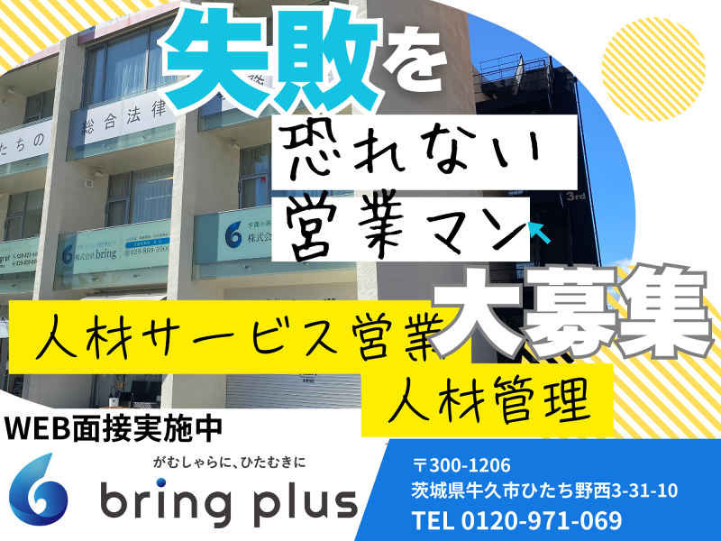 アピールポイント: ① 「失敗をたくさんしろ」と本気で言う会社です bring plusは、結果だけを見ません。 挑戦した数・動いた量・失敗から何を学んだかを大切にします。 失敗や挫折を、次につながる経験として評価します。 ② 結果より、挑戦の数を見ています 数字が出なかった理由を責めることはありません。 挑戦しなかったことの方が評価に影響する会社です。 だからこそ、営業も管理も本気でチャレンジできます。 ③ 決裁スピードが非常に速い 良い提案は即決。 現場の判断を尊重し、スピード感を持って進められる環境です。 「まずやってみる」が実現できます。 ④ 風通しがよく、仲間意識が強い 多少の厳しさはありますが、上下関係はフラット。 困った時は必ず誰かが手を差し伸べる、 一人にしないチーム文化があります。 ⑤ 無駄なルール・無理な残業はありません 無理な残業なし 無駄な残業なし 朝は9時出勤 成果に直結しないことはやらない、効率重視の会社です。