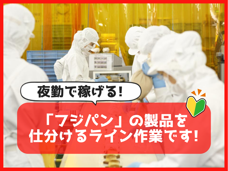 仕事内容 / CMなどでもお馴染み✨ 「本仕込」「ネオバターロール」などを作る フジパンの工場内でのお仕事です♪ 仕分けスタッフ募集✨ \ 【お仕事内容】 ベルトコンベアー上に流れてくるパンを 納品先ごとに仕分けする簡単な作業! 未経験の方でも周りの先輩スタッフが サポートできる環境が整っているので安心です!