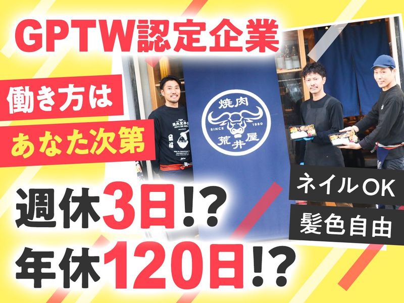 仕事内容 ―――――◆ 求人のポイント ◆――――― ・25年11月リニューアルオープン! ・GPTW認定「働きがいのある会社」 ・年休113日/週休2日制/有給取得率100% ・入社から半年で店長・料理長も可能! ・離職率5%以下!20、30代の若い幹部も! ・高利益率(25〜30%)で給与も高水準◎ ・独立支援制度◎10名以上の実績あり! ・新規出店予定多数あり! ―――――――――――――――――――― “働きやすさ”と“働きがい” どちらも本気で追求するのが、 Def eat のスタンス。 休みの多さだけじゃない。 自由度だけでもない。 個性も、アイデアも、挑戦心も、遊び心も。 全部ひっくるめて 「あなたらしいキャリア」が実現できる場所です。 ここは、 ただの“飲食店の社員”じゃ終わらない会社。 若手がスピード昇格し、裁量を持ち、 「自分の店をつくる」ような感覚で働けるステージがあります。 当社で新たなキャリアを スタートさせてみませんか?+。 ―――◆ お任せする主な業務 ◆――― ホールでの接客業務全般をお任せします! ◎お客様のご案内 ◎料理の提供 ◎在庫管理・発注 ◎レジ・事務作業 など 未経験でも安心してください♪ 経験・スキルに応じて業務をお任せするため 着実にステップアップできます◎ 徐々にできる仕事の幅を広げていってください! □■「働きがいのある会社」認定■□ 当社Def eatは、 Great Place to Work®(GPTW)認定企業。 社員が安心して、自分らしく 長く働ける環境を本気でつくっています。