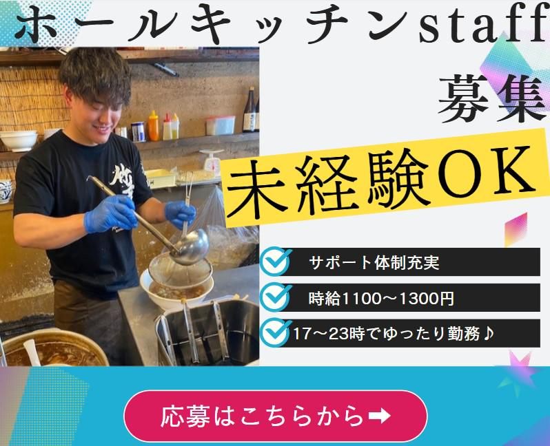 仕事内容 ✨✨✨アピールポイント✨✨✨ ✅丁寧サポートで未経験でも安心 ✅まかないあり(4時間勤務~) └お好きなメニュー食べれます♪ ✅土日は時給UP ✅幅広い年代の方が活躍中 ✅オーダー業務なし!タッチパネル式♪ ⭐日々の魅力をXで発信しています⭐ https://x.com/hituketouzoku ○。――――――――――――――――。○ ⭐仕事内容⭐ ラーメン店の ホール・キッチン業務をお任せ! ■配膳 ■調理補助 └まずはチャーシューやネギといった トッピングの盛り付けや、 簡単なご飯ものの調理から◎ ■店内清掃 ■後片付け など 活躍中のスタッフもみんな 未経験からのスタートなので 安心してご応募くださいね♪ ○。――――――――――――――――。○ ⭐代表からのメッセージ⭐ ご覧いただきありがとうございます。 これからも当店のラーメンを お客様においしく召し上がっていただく為に 是非とも力をお貸しください。 この業界で働いて良かったと思って いただける方をひとりでも多く 育成したいという気持ちです。 一緒に元気に働きましょう♪ 「ラーメンが好き」 「接客が好き」 「独立を考えている」 といった方は大歓迎です! ○。――――――――――――――――。○ ⭐嬉しい食費補助あり⭐ お店のメニューをスタッフ価格で 食べることが可能です♪ 美味しい料理はお客さんにも オススメしてあげてください! ⭐もちろん経験者さんも歓迎!⭐ 飲食店経験者さんは 即戦力として活躍できますよ! ブランクがあっても大丈夫です◎ ⭐こんな方にオススメ⭐ □ラーメンが好き □バイトデビュー/初バイト □未経験から挑戦してみたい □幅広い年代が活躍している職場で 働きたい □まかないが食べられる職場で 働きたい