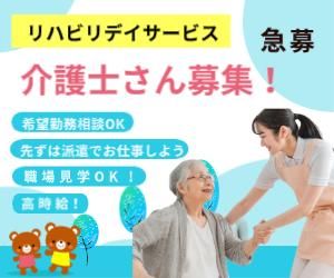 【急募】週3日勤務/人気のリハビリデイ/夜勤無し/水日休み/未経験歓迎/無資格歓迎 【求人番号:K-01-0020】 お電話にてお問合せの際には、求人番号をお伝えください - ★必要なリハビリを「必要なときに」「必要なだけ」提供するリハビリ特化型デイサービスです。 高齢者が元気に健康に活き活きと生活するための、 高齢者用ジムとしての役割も担っております そこで、利用者さんが行う運動のお手伝いをお願いできる方を募集! 元気な方が多いので、介護としての業務はとてもやりやすいので 無資格な方も、これから介護のお仕事の勉強したい方も もちろん、介護職歴のベテランさんも お仕事スタートしやすいですよ♪ 就業前にはもちろん見学もOK! お気軽にお問い合わせください。 ★登録会は随時行っております。どうぞお気軽にご応募ください。 ★土日・夜間の登録会も開催予定!日程はお問い合わせください! 電話(0120-752-231)でのご応募もお待ちしております