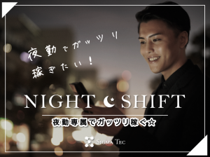 21:00~6:00までの夜勤のオシゴト!土日祝含む週5日シフト勤務で希望休も取れます◎働く期間の相談もOK!20代~50代スタッフ活躍中◎