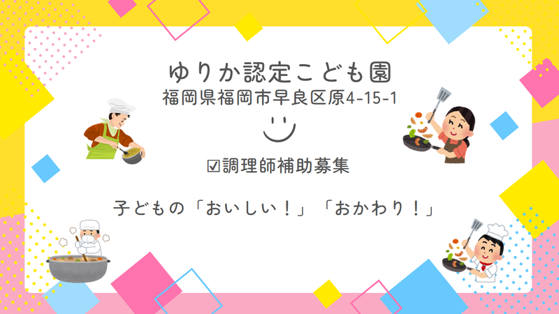 仕事内容 * … * … * … * …* … * …* …* … \\この求人のアピールポイント// ☑成長の瞬間に立ち会える └苦手だったピーマンを一口食べられた時 その小さな成長を、保育士や子どもたちと 一緒に喜び合えます! ☑チームで支える保育 └保育士や栄養士と連携し、 「チームの一員」として子どもたちの 成長を支える一体感も大きなやりがいに! ☑働きやすさも大切に └土日祝休みで残業もほとんどないため、 プライベートの時間も大切にしながら、 専門性を活かして長くご活躍いただけます * … * … * … * …* … * …* …* … ⭐数字で見るゆりか認定子ども園  ̄V ̄ ̄ ̄ ̄ ̄ ̄ ̄ ̄ ̄ ̄ ̄ ̄ ̄ ̄ ̄ ̄ ̄ ̄ ☑「1日230食」ほどの調理 ☑残業は「0です」 ⭐保育園給食とは  ̄V ̄ ̄ ̄ ̄ ̄ ̄ ̄ ̄ ̄ ̄ ̄ ̄ ̄ ̄ ̄ ̄ ̄ ̄ ~保育園給食:「育てる」ための食事~ ☑発達段階に合わせた調理 ☑アレルギーへの細心の注意 ☑「食育」の第一歩 └子どもたちが「食べることが楽しい」 こんな姿を見れると嬉しいですね♪